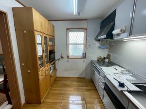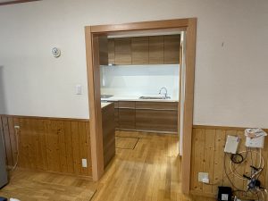 又、背面には無垢材の家具の食器棚もありましたが、今回キッチンと一緒にお取替えされることになりました。